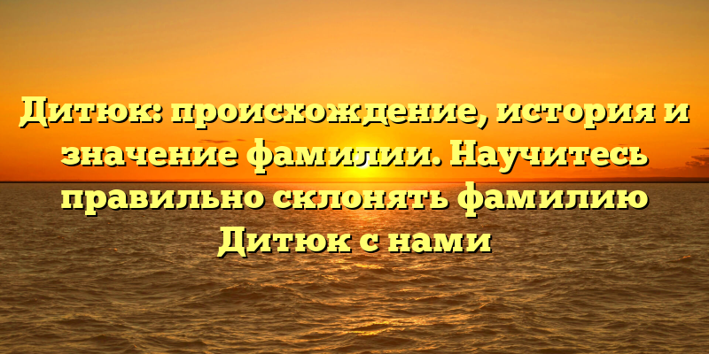 - Происхождение и значение фамилии Дитюк: история скрывается за названием. Найдите правильный способ склонения с помощью наших советов.