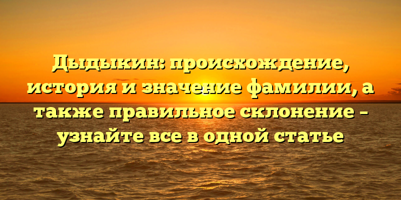 Дыдыкин: происхождение, история и правильное склонение фамилии – узнайте все о редкой фамилии в одной статье