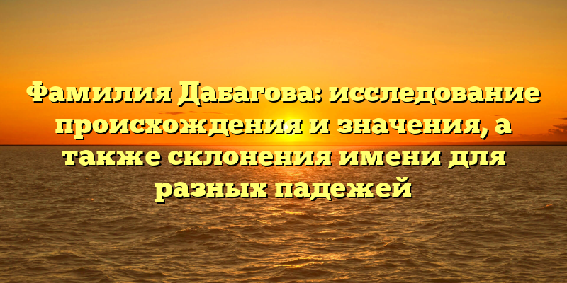 Изучение фамилий и их происхождения позволяет нам понимать многое о культуре и истории нашего народа. В этой статье мы более подробно рассмотрим происхождение фамилии Дабагова, ее значения и склонения для различных падежей.