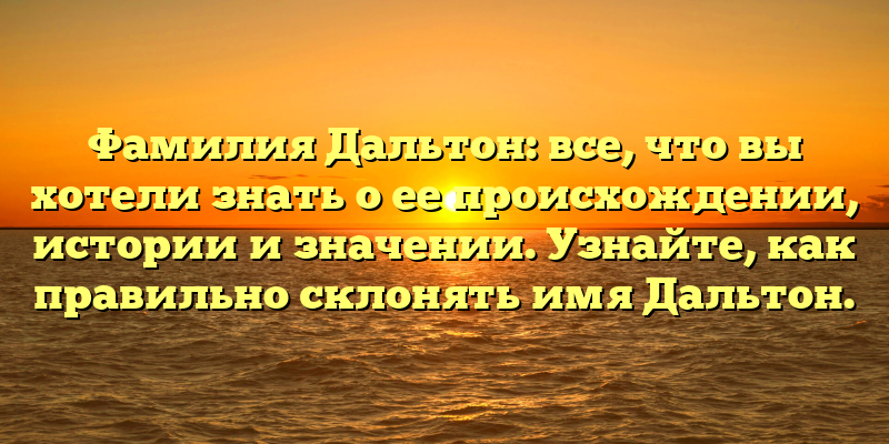 - История и происхождение фамилии Дальтон: все, что нужно знать и как правильно склонять имя.
