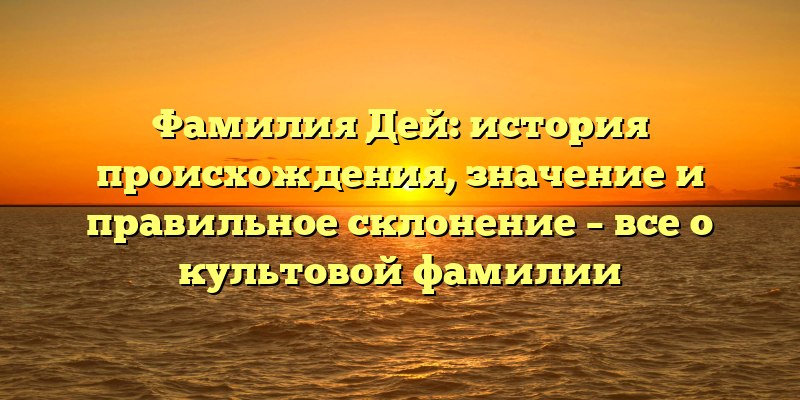 - Фамилия Дей: происхождение, значение и склонение. Узнайте всё о символической фамилии, которая захватила мировую культуру.