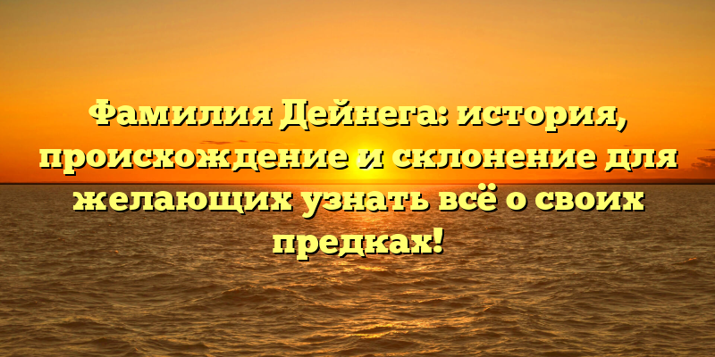 - Раскрываем тайны происхождения фамилии Дейнега: полный гайд по истории, склонению и генеалогии!