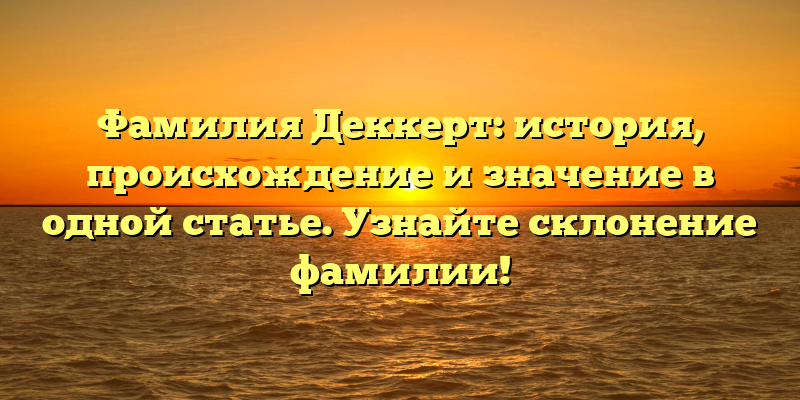 - Фамилия Деккерт: происхождение, история и склонение в одной статье — узнайте значение вашей фамилии!