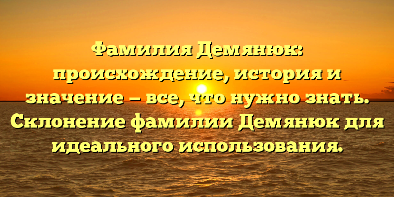Фамилия Демянюк: происхождение, история и значение — полный гид. Как правильно склонять фамилию Демянюк для идеального SEO-использования.