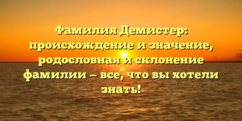 Узнайте всю правду о фамилии Демистер: происхождение, значение, родословная и склонение в одной статье!