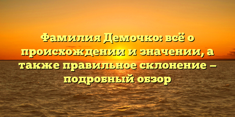 Происхождение и правильное склонение фамилии Демочко: подробный обзор ее значения и истории