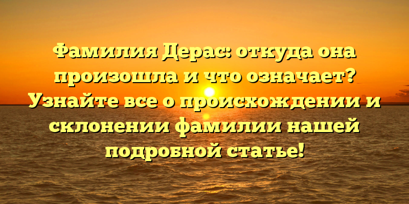Готовы узнать все о фамилии Дерас? Тогда продолжайте чтение нашей статьи!