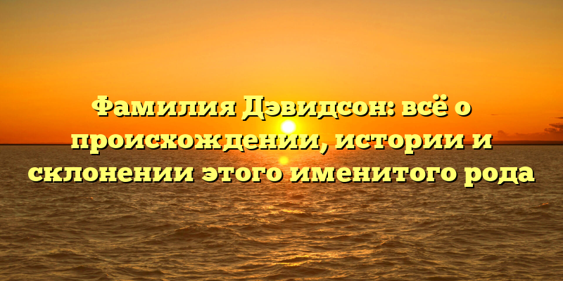 Дэвидсон – знаковое имя в истории США. Этот род славится своими достижениями в бизнесе, науке и искусстве. Но что известно о происхождении и истории этой фамилии? Как её склонять и какова родословная?