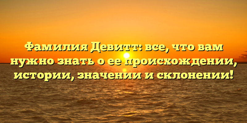 - Фамилия Девитт: предыстория, значения и правильное склонение — полное руководство!
