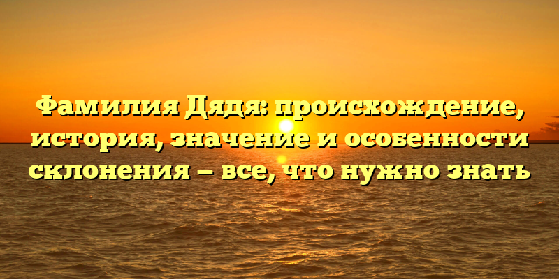 - Фамилия Дядя: история происхождения и особенности склонения — полное руководство для исследования данного имени семьи
