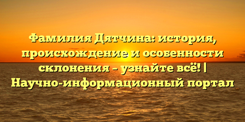 - Фамилия Дятчина: происхождение, история и склонение — окунитесь в мир генеалогии с нашим научно-информационным порталом!