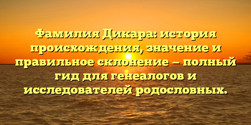 - Исследование происхождения и значения фамилии Дикара: полный гид для генеалогов и родословных исследователей.