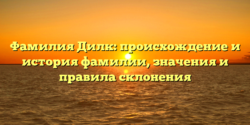 - Фамилия Дилк: от родословной до склонения — полный обзор истории и значения