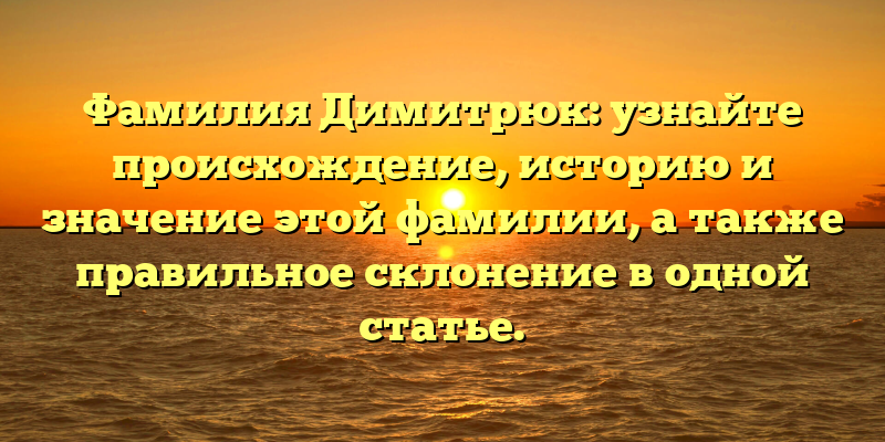 Полное руководство по фамилии Димитрюк: происхождение, история, значение и правильное склонение в одной статье