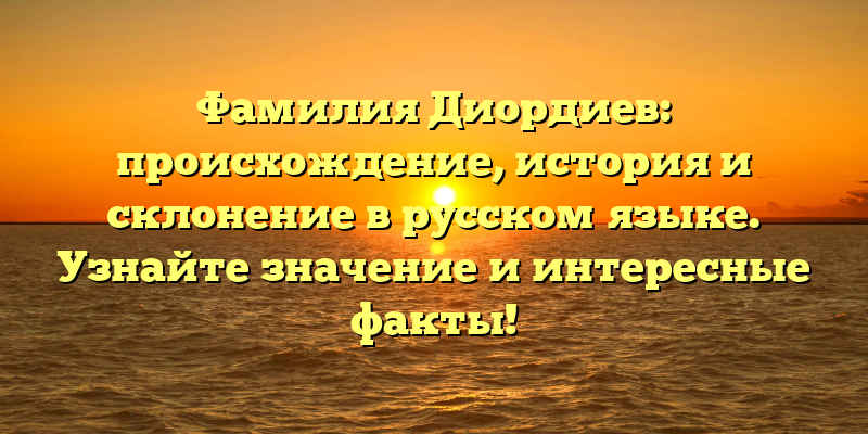 Существуют фамилии, которые вызывают особый интерес своим происхождением и историей. Фамилия Диордиев именно такая. Известна она далеко за пределами России, занимая место в списке самых распространенных фамилий в мире.