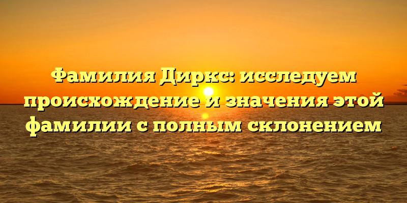 - Раскрываем тайны фамилии Диркс: происхождение и значения с полным склонением.