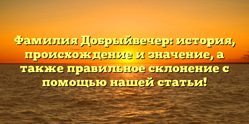 Фамилия Добрыйвечер: происхождение, значение и правильное склонение в одной статье для вашего генеалогического древа.
