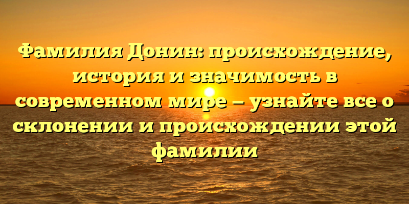 - Фамилия Донин: происхождение и история фамилии, рассказанная экспертом — разберем склонение и значение в настоящее время