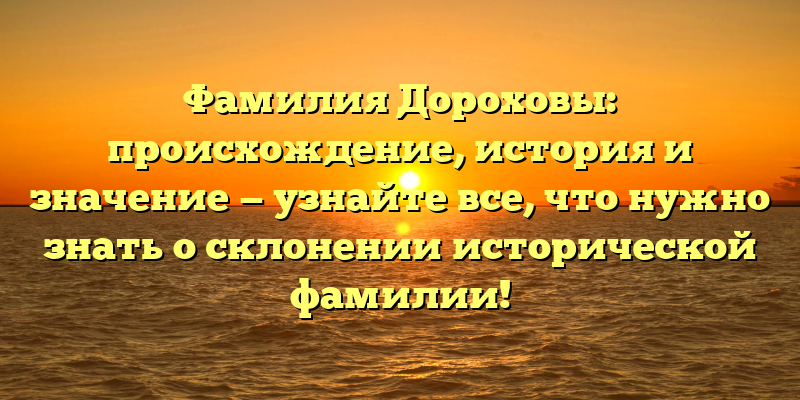 Фамилия Дороховы является достаточно распространенной в России. Сегодня она встречается в разных уголках страны, но многие из ее носителей не знают, каково происхождение этой фамилии, что она означает и как правильно ее склонять. В этой статье мы расскажем все, что нужно знать о фамилии Дороховы, ее истории и традициях.