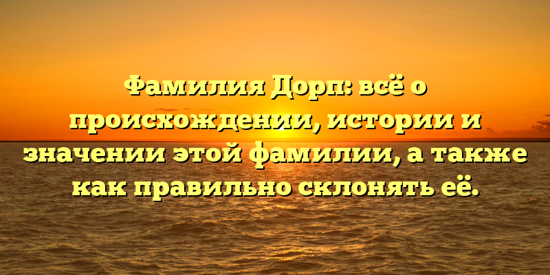 - Фамилия Дорп: происхождение, история и значение, а также правила склонения в одной статье
