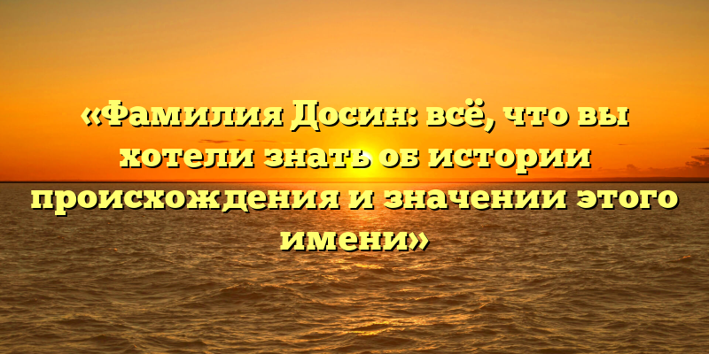 - Фамилия Досин: история, происхождение и значение этого уникального имени