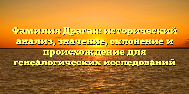 - Исследование фамилии Драган: происхождение, значение и склонение для успешных генеалогических исследований