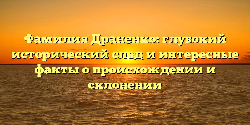 - История фамилии Драненко: истоки, значимость и удивительные особенности
