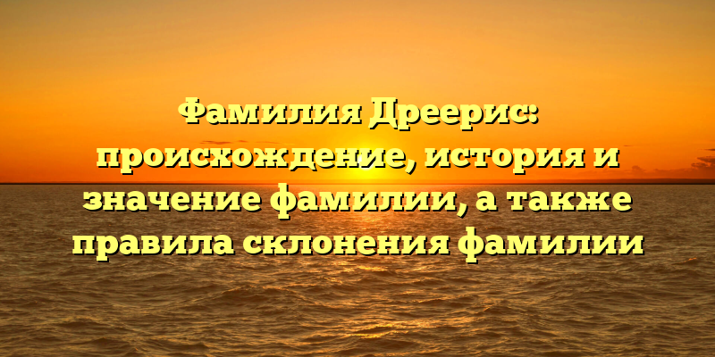 - Фамилия Дреерис: история, происхождение и правила склонения. Узнайте значение этой фамилии!