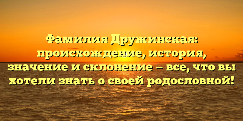 - Все о фамилии Дружинская: исследуем происхождение, историю, значение и склонение в этой увлекательной статье о вашей родословной!