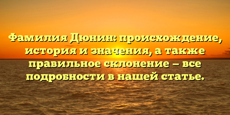 - Раскрываем тайны фамилии Дюнин: происхождение, история и правила склонения — читайте нашу статью!