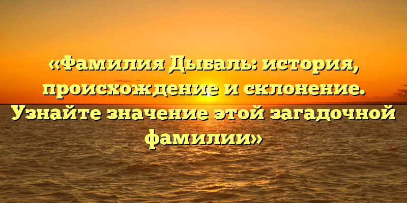- Фамилия Дыбаль: происхождение, история и склонение — всё, что вы хотели знать об этой загадочной фамилии