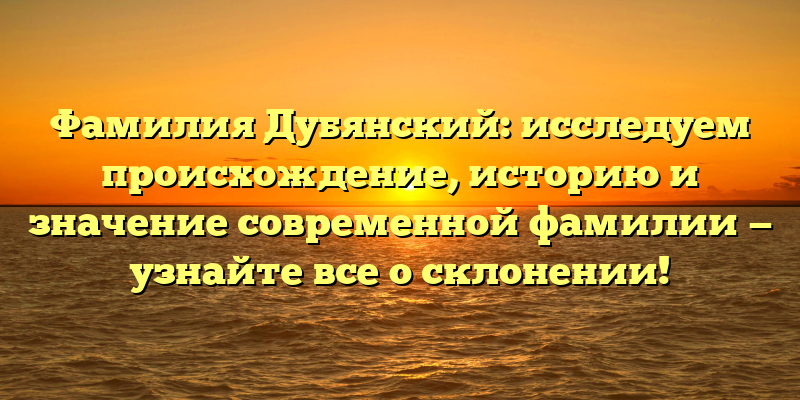 Дубянский — одна из самых распространенных фамилий в России. Интересно, что она звучит довольно необычно и не так часто встречается в других странах. В данной статье мы рассмотрим происхождение, историю и значение фамилии Дубянский, а также узнаем, как правильно ее склонять.