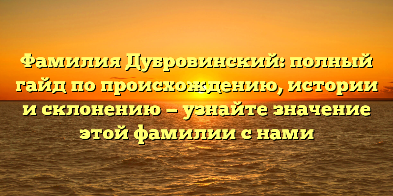 Все, что нужно знать об истории и происхождении фамилии Дубровинский: полный гайд со склонением и значениями