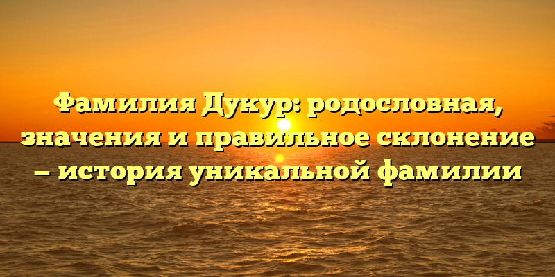 - Узнайте все о фамилии Дукур: родословная, значения и правильное склонение в истории уникальной фамилии.