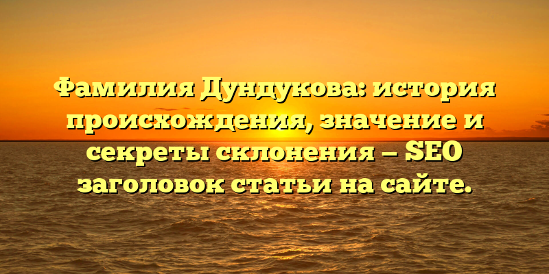 - Раскрываем тайны фамилии Дундукова: происхождение, значение и правильное склонение — SEO заголовок статьи на сайте.
