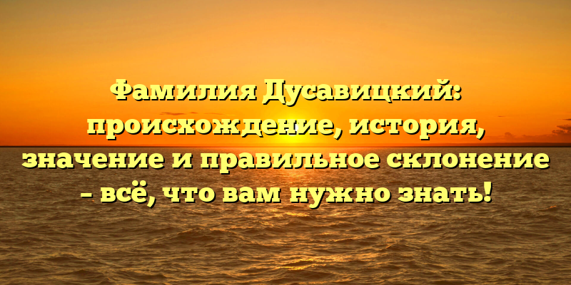 Фамилия Дусавицкий: происхождение, история и правильное склонение – генеалогический обзор для всех интересующихся.