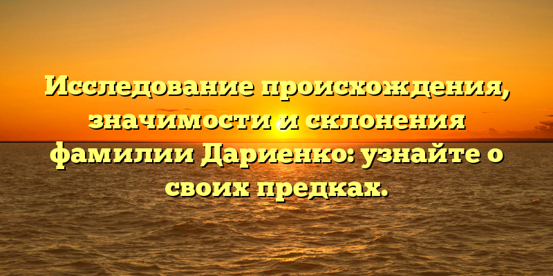 - Откройте тайны своей генеалогии: исследование происхождения и склонения фамилии Дариенко