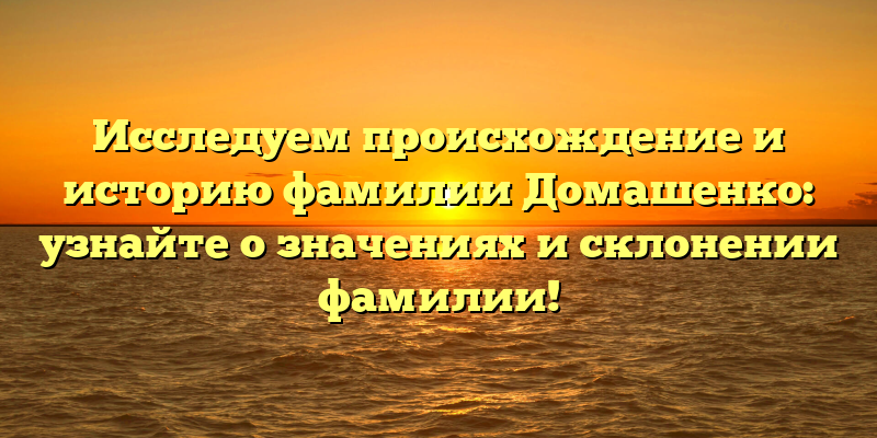 По следам происхождения фамилии Домашенко: значение, история и склонение имени