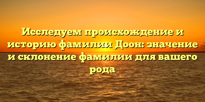 Открываем историю фамилии Доон: происхождение и значение для вас и вашего рода