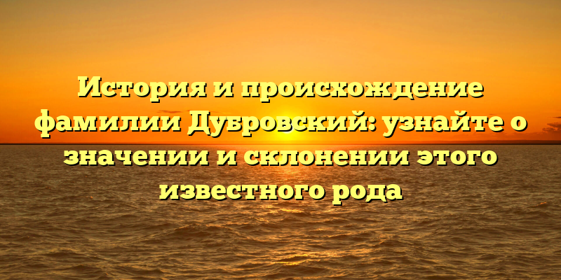 В современном мире фамилия Дубровский имеет не только историческую, но и культурную значимость. Она является неотъемлемой частью культуры и идентичности многих русских семей. В данной статье мы рассмотрим происхождение этой фамилии, современное значение и особенности ее склонения.