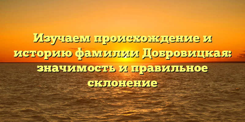 - Раскрываем тайны происхождения фамилии Добровицкая: важность и корректное склонение