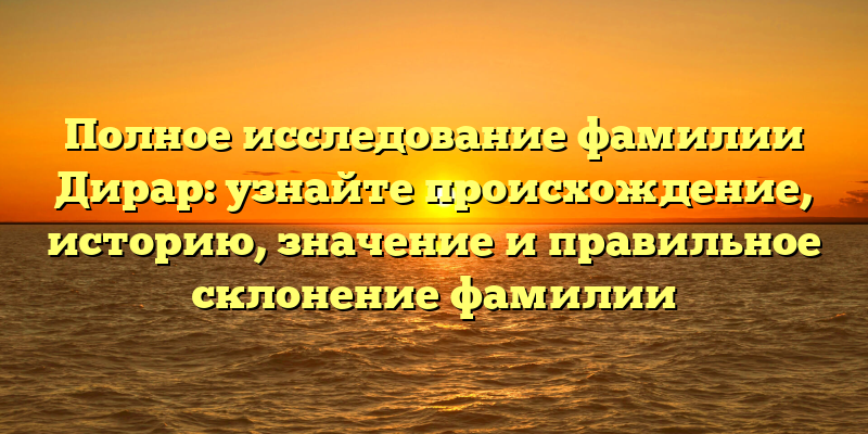 Исследуйте истоки и значение фамилии Дирар: полный обзор происхождения, истории и правильного склонения