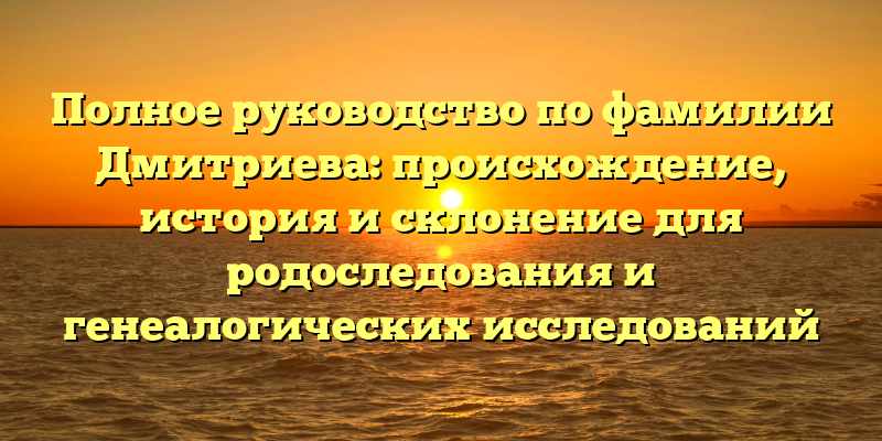 - Фамилия Дмитриева: Полное руководство по происхождению и истории для успешных генеалогических исследований
