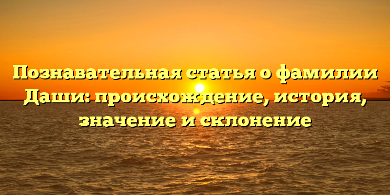 Если ваша фамилия Даша или вы интересуетесь историей фамилий, то эта статья обязательно для вас!