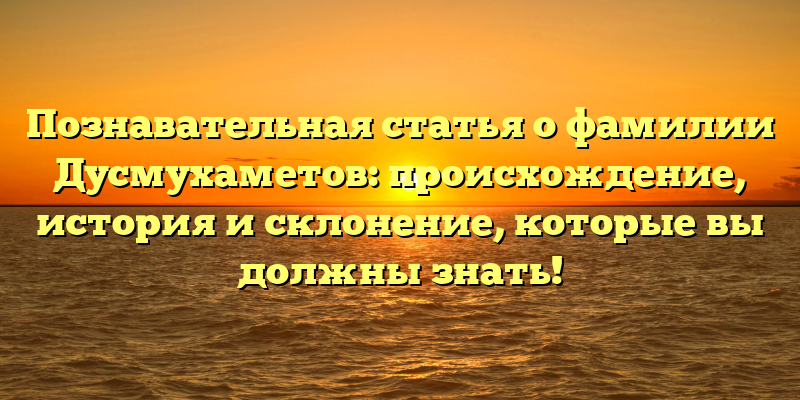 Фамилия Дусмухаметов: Всё, что вы хотели знать о происхождении и истории, а также правильном склонении!