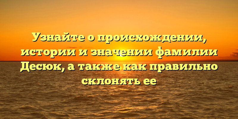 - Исследование фамилии Десюк: происхождение, история и склонение