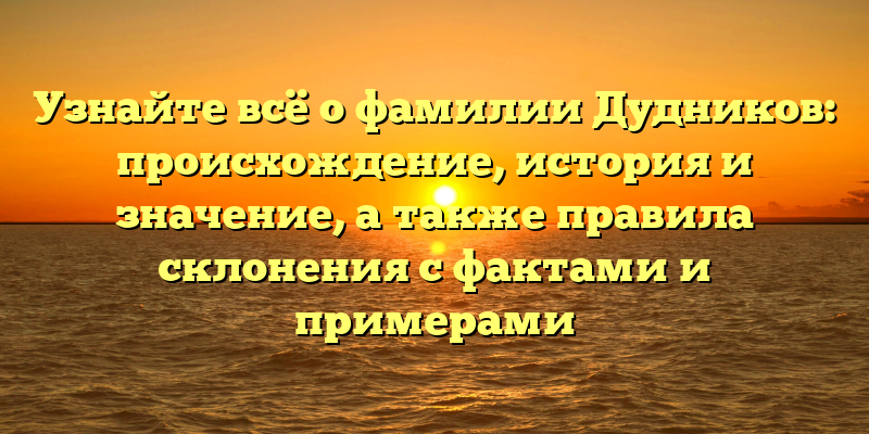 Фамилия Дудников: происхождение, история и правила склонения с фактами и примерами — узнайте всё!