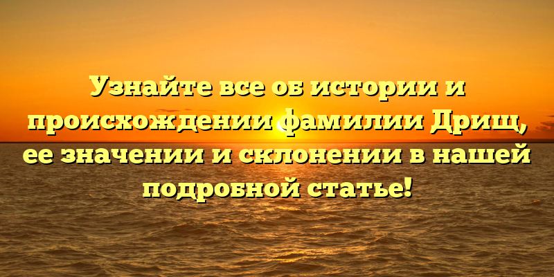 Фамилия Дрищ имеет интересную историю происхождения, которая связана с украинской культурой и традициями. В данной статье мы расскажем об истории фамилии Дрищ, ее значении и склонении.