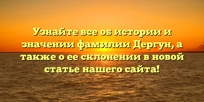 Не пропустите возможность узнать всю информацию о фамилии Дергун!
