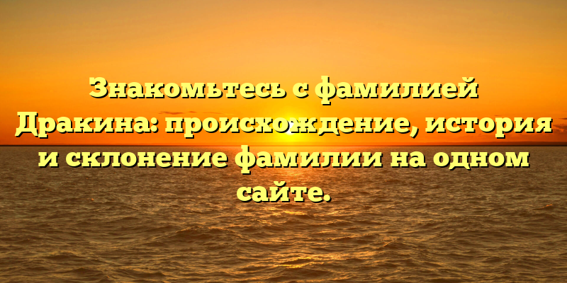 Узнайте все о фамилии Дракин: происхождение, история и склонение на одном сайте — единый источник информации